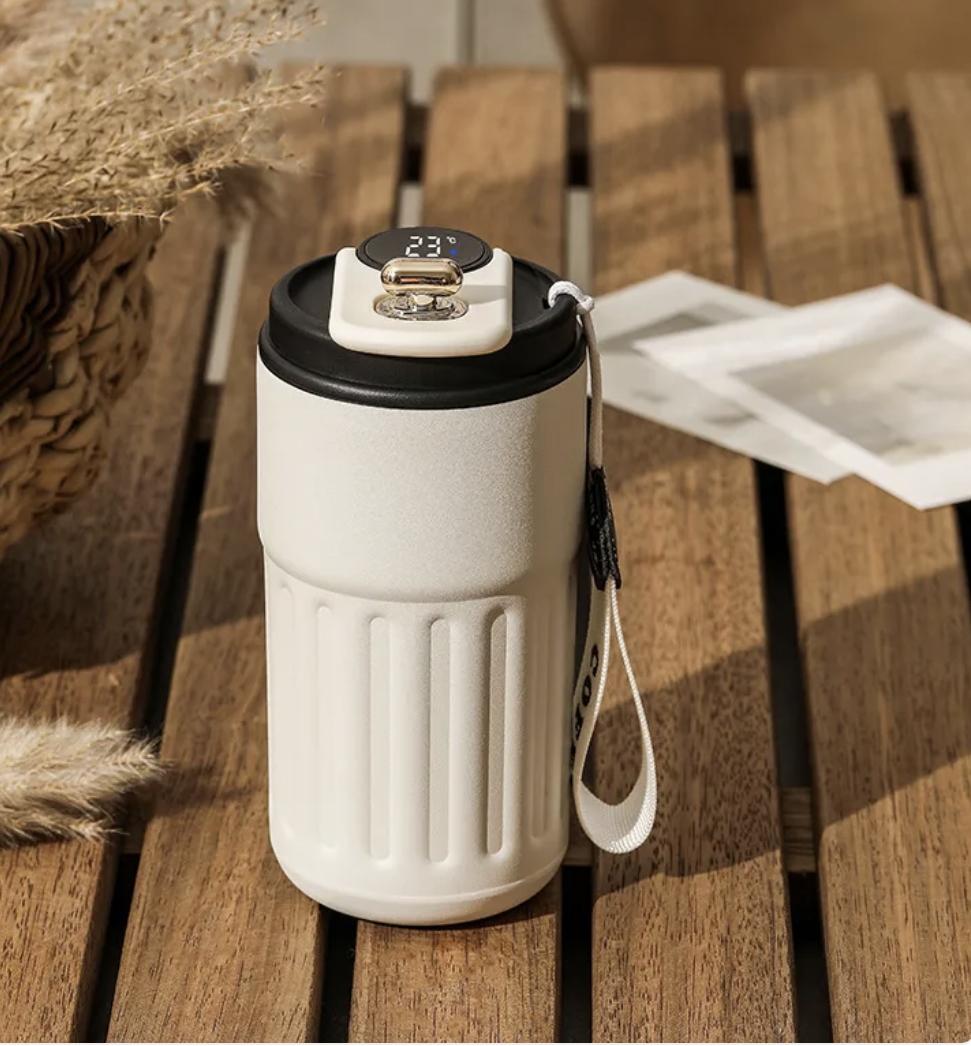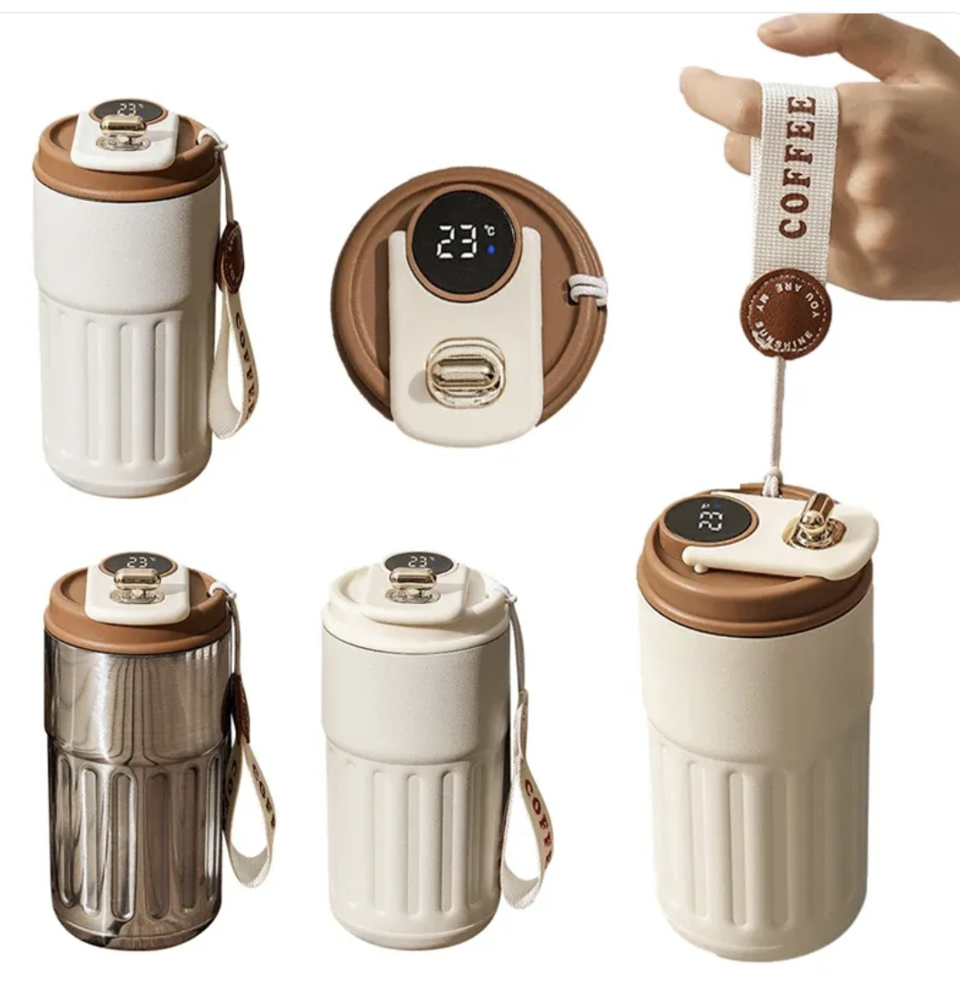 Akıllı Dijital Termal Şişe Taşınabilir Kahve Kupası Paslanmaz Çelik Su Şişesi Araç İçi Yalıtımlı Bardak Soğuk Tutan Vakumlu Mataralar 450ml